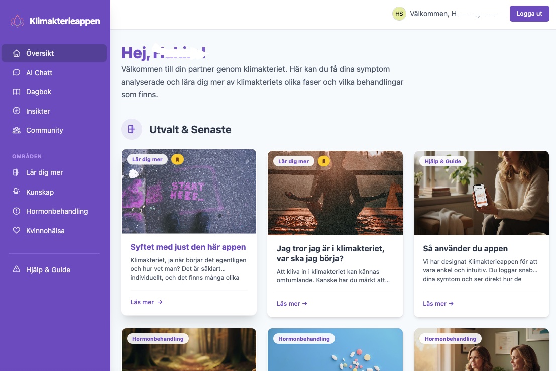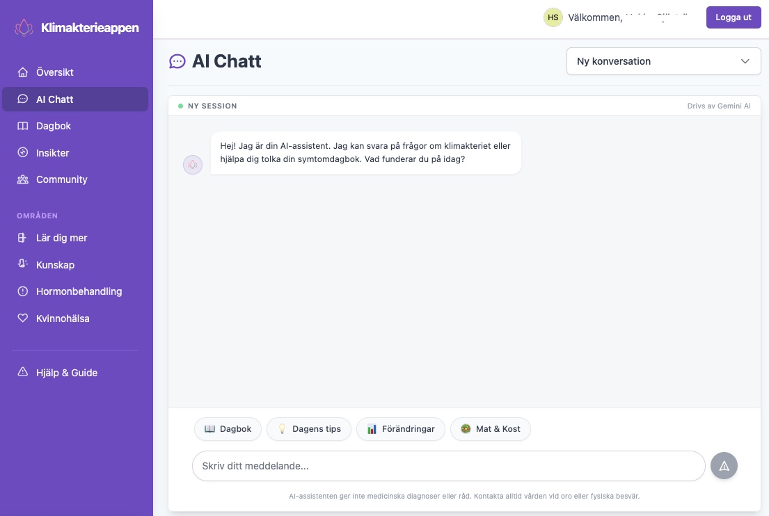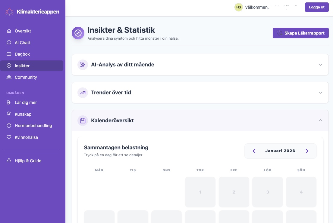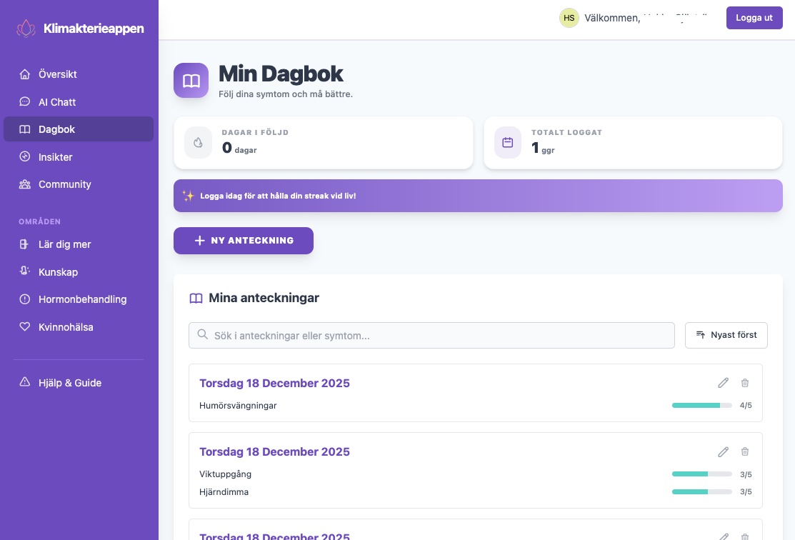 Vi har designat Klimakterieappen för att vara enkel och intuitiv. Logga snabbt dina symtom och se direkt hur de utvecklas över tid.
